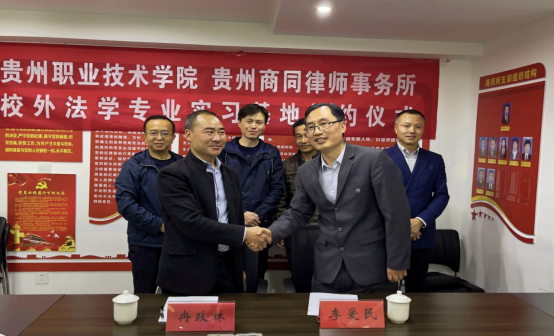 为了促进专业建设和提高人才培养质量,实践校企合作、双主体育人的现代职业教育理念,商业与贸易学院法律教研室与贵州商同律师事务所于2021年4月22日上午在贵州商同律师事务所开展了校企合作专题调研会,会后双方隆重举行了合作签约暨授牌仪式。
